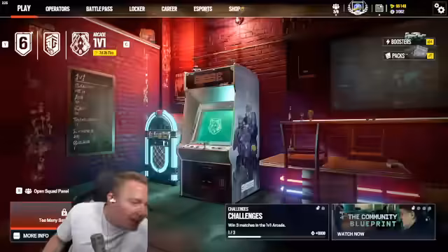 02:53:20Der Streamer spielt nun Rainbow Six: Siege im Fünfer-Squad gegen Teams aus höheren Ligen (Diamond, Emerald). Er analysiert verschiedene Runden und kritisiert die Team-Synergie, besonders die unkoordinierten Bewegungen und fehlende Deckung im 'Spot'. Er wechselt mehrmals Operatoren und versucht, taktische Vorteile durch gezielte Placements und die Nutzung von Gadgets zu erzielen, aber das Team bleibt oft unkoordiniert.