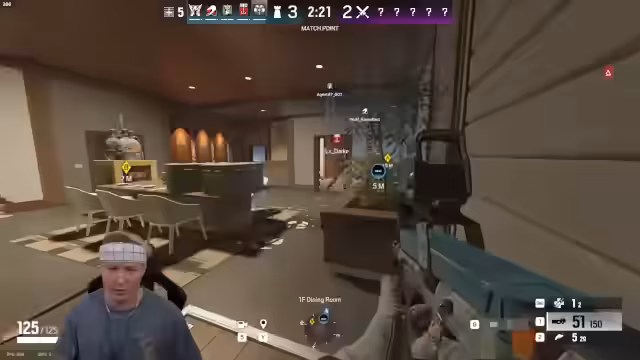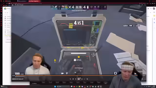 03:50:13Die Verteidigung verläuft chaotisch. Die Kommunikation ist schlecht, und die Teammitglieder spielen isoliert an verschiedenen Orten der Map statt als Einheit. Der Streamer verliert durch unglückliche Zufälle und mehrere teaminterne Fehlkommunikationen wichtige Kämpfe. Sein Teamkollege gerät in einen Fire von einem anderen Teammitglied, was zu einem klärenden, aber frustrierenden Gespräch über bessere Taktiken und die Notwendigkeit von klaren Calls führt. Es kommt zu einem Zusammenbruch der gesamten Verteidigungslinie.