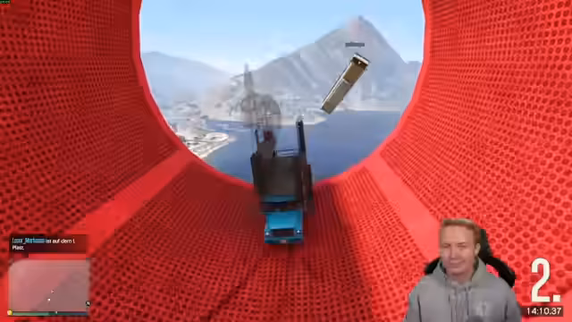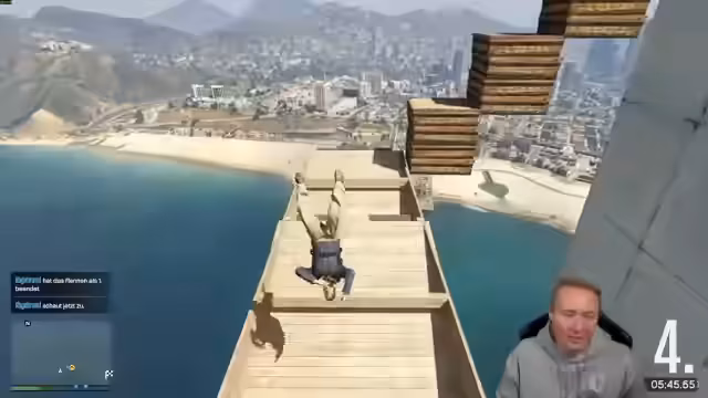 04:17:48Die Spieler navigieren weiterhin durch den anspruchsvollen GTA-Parcours, der mit zahlreichen Fallen und Hindernissen gespickt ist. Sie kommentieren die Schwierigkeit, bestimmte Abschnitte zu überwinden, wie etwa das Balancieren auf schmalen Pfaden oder das Vermeiden von Jets, die Lärm verursachen. Es kommt zu gegenseitigen Neckereien und Troll-Aktionen, bei denen Spieler versuchen, sich gegenseitig von der Strecke zu schubsen, um Vorteile zu erzielen. Die Interaktionen sind geprägt von Humor und Wettbewerb, während sie versuchen, die besten Wege zu finden und Fallen zu umgehen. Ein Spieler beschwert sich über die Lautstärke eines Jets, der von einem anderen Spieler aktiviert wurde, während er versucht, in Ruhe den Parcours zu absolvieren. Die Spieler beobachten sich gegenseitig und kommentieren die Erfolge und Misserfolge der anderen, wobei die Freude am Trolling im Vordergrund steht. Die Runde endet mit einem Zeppelin-Abschnitt, bei dem die Spieler versuchen, den Zeppelin zu nutzen oder zu vermeiden, um ins Ziel zu gelangen. Es stellt sich heraus, dass man in den Rotor eines Zeppelins laufen und zerstückelt werden kann, was zu weiteren amüsierten Kommentaren führt. Am Ende der Runde werden die Platzierungen bekannt gegeben, und die Spieler reflektieren über die verrückten Erlebnisse und die Kreativität der Maps.