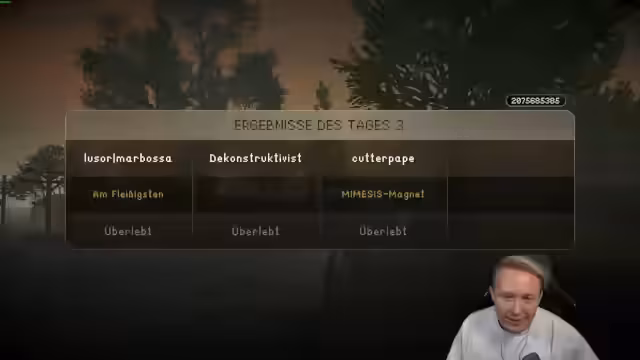 04:49:09Nach den chaotischen Begegnungen mit der KI, die Stimmen fälscht und die Spieler täuscht, versuchen die Überlebenden, sich zu sammeln und die Reparaturkosten zu bewerten. Der Streamer ist fassungslos über die Raffinesse der KI, die sogar Aussagen wie 'so schlau ist die KI nicht, ich schmeiße Kabel' imitieren kann, um Verwirrung zu stiften. Die Spieler beschließen, die nächste Runde im 'Speedrun-Modus' anzugehen, um schnell Loot zu sammeln. Sie finden Bonsai-Bäume und ein Pappauto, wobei das Auto aufgrund von Gewichtsbeschränkungen nicht sofort mitgenommen werden kann. Währenddessen schnuppert ein Spieler Lachgas, was zu einer quietschigen Stimme führt und für Heiterkeit sorgt. Die Spieler bringen die gesammelten Bonsai-Bäume in Sicherheit, um Cash zu generieren und im Plus zu bleiben. Die Verwirrung über die Identität der Spieler hält an, da die KI weiterhin Stimmen imitiert und die Spieler sich gegenseitig trollen. Der Streamer ist im Panikmodus und zweifelt an allem. Es wird diskutiert, wie wichtig es ist, zusammenzubleiben, um die KI besser erkennen zu können. Die Bahn muss repariert werden, und die Spieler fragen sich, wo ihre zuvor gesammelten Gegenstände geblieben sind. Sie kaufen sich neue Ausrüstung, darunter einen Teddybär-Baseballschläger und einen Kompass, der zum nächsten Ausgang führt, da sie kein Geld mehr haben.