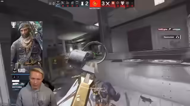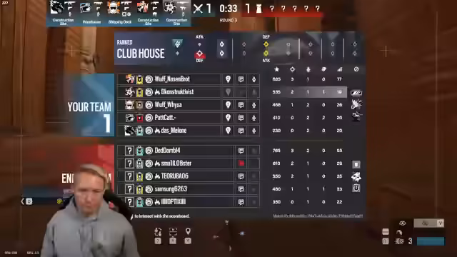 02:37:19In der letzten Runde des Rainbow Six Siege Matches spitzt sich die Lage zu. Das Team versucht, eine Wand zu verstärken und Strom anzulegen, um die Verteidigung zu sichern. Die Spieler müssen aufmerksam sein, da ein Breach-Angriff droht. Trotz eines Fehlers, der bereits zum zweiten Mal passiert, bleibt die Konzentration hoch. Die Gegner setzen auf Operatoren wie Blitz und Blackbeard, was die Verteidigung erschwert. Ein Spieler bemerkt das Fehlen eines Tubarão, was die Strategie weiter beeinflusst. Die Kommunikation über die Position des Diffusors und die Bewegungen der Gegner ist entscheidend. In einem dramatischen Finale gelingt es dem Team, die Runde knapp zu gewinnen, was als eine „kranke Runde“ und ein „crankes Game“ beschrieben wird, das bis zum Schluss spannend war.