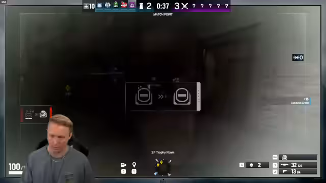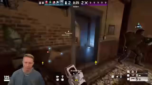 02:45:00Das Hauptthema des Streams ist das Spielen des Rainbow Six Siege Raids auf der Map Chalet im Team mit den Zuschauern Jeremy und Petcat. Nach einem erfolgreichen Start in der ersten Runde, bei der die Valkyrie-Cam sicher eingenommen werden konnte, gerät das Team in der zweiten Runde unter Druck. Trotz koordinierter Angriffe und der Sicherung wichtiger Punkte wie Mainstairs und Library kann das Team den Gegner nicht bezwingen, was auf ein langsames Teamplay und unkoordinierte Aktionen zurückgeführt wird. Es werden Fehler wie die fehlende Fähigkeit, eine bereits aufgerissene Tür zu nutzen, und ein verpasster 1v1-Kampf am Ende kritisiert.