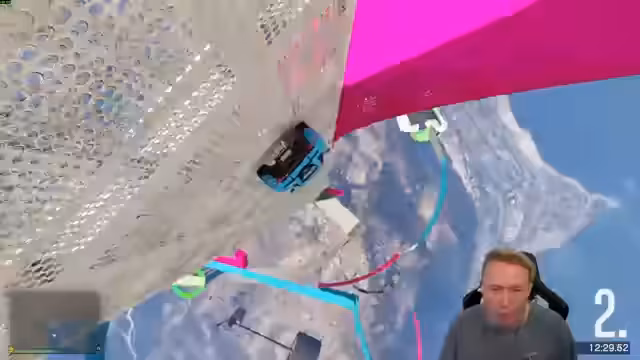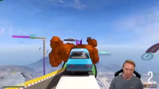 01:57:50Nachdem die erste Map abgebrochen wurde, wechselt der Stream zu einem weiteren Parcours mit den Spielern Cedric und Deko. Gemeinsam werden verschiedene Fahrzeuge wie der Pounder oder ein Bus ausprobiert, die teilweise seltsam agieren. Es kommt zu spielerischen Konfrontationen und humorvollen Aktionen, wobei der Fokus auf Stunts und abfahrenden Fahrzeugen liegt, was ein entspannteres Flair erzeugt.