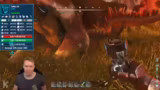 01:09:49Ein zentraler Punkt ist das Zähmen des Managama, eines aggressiven Dinos. Dabei werden Theorien getestet, wie dieser zum Angriff bewegt werden kann, beispielsweise durch das Platzieren einer Fackel. Die Versuche gestalten sich jedoch schwierig. Im weiteren Verlauf des Streams wird ein Dreadnough-Schrein gespawnt, der einen zeitlich limitierten Zähmungsprozess auslöst, bei dem der Streamer unter hohem Druck steht, die richtigen Ressourcen zu beschaffen, was zu erheblicher Frustration führt.