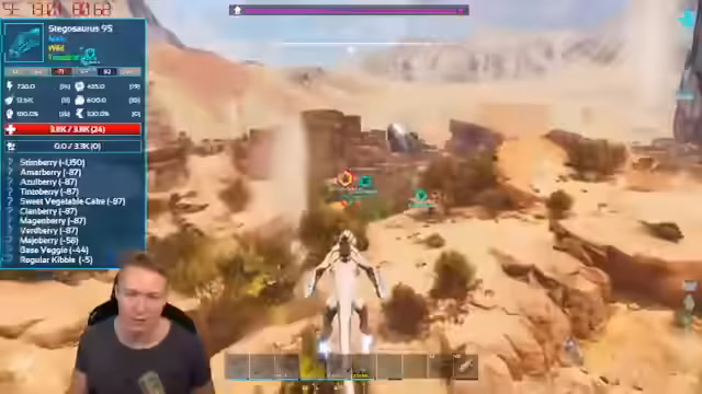 00:19:14Das Gameplay konzentriert sich auf das Tamen von Dinosauriern in ARK. Zuerst wird der Versuch unternommen, einen Edmontonia zu finden, was nach einem gescheiterten Rot-Drop fehlgeschlagen ist. Anschließend wird ein Velociraptor als Ziel identifiziert. Ein technischer Vorfall, bei dem die Tastatur und Maus ausfallen, führt zu einer längeren Pause und einem Neustart des Streams, was die Farm-Session unterbricht. Die Werte des Velociraptors werden als gut befunden, insbesondere der Schaden.