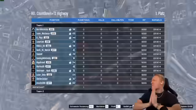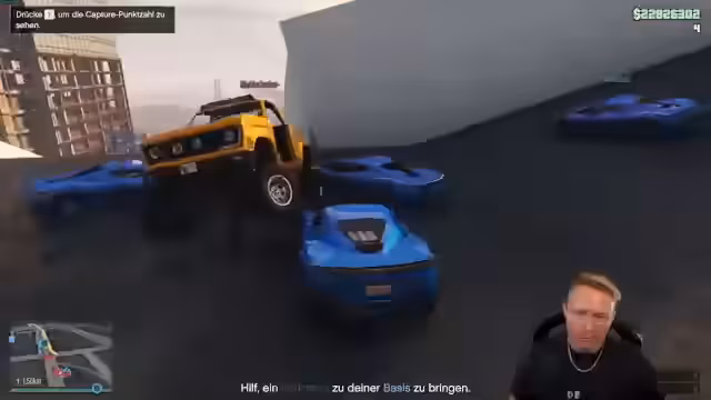 01:04:55Der Stream beginnt mit einem voll besetzten Lobby, in der das Team Blau das Rennen im Spiel GTA startet. Der Streamer betont, dass er sich in der Vergangenheit schlecht angestellt hat, aber nun motiviert ist. Er und seine Mitspieler Marvin und Pasi steigen in ihre Fahrzeuge, um die Waffen gegen das gegnerische Team einzusetzen. Das Spiel ist bereits in vollem Gang und die Helis sind im Einsatz, was auf das Vorhandensein von Sternen im Spiel hindeutet. Der Fokus liegt darauf, gemeinsam agieren und die Stellung zu halten.