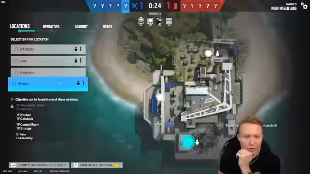 03:51:27Der Streamer startet eine Ranked-Runde auf der Map Nighthaven in Rainbow Six: Siege. Sein Team, bestehend aus ihm und zwei anderen Spielern, plant einen strategischen Angriff auf das gegnerische Team. Es kommt zu intensiven Feuergefechten, taktischen Entscheidungen wie dem Platzieren von C4 und Claymores sowie dem Versuch, das Gegnerteam mit überraschenden Manövern wie dem Eindringen durch Mira-Fenster zu überlisten. Nach einem holprigen Start und einigen Fehlschlägen gelingt es dem Team schließlich, die Runde zu gewinnen und in der Rangliste aufzusteigen.