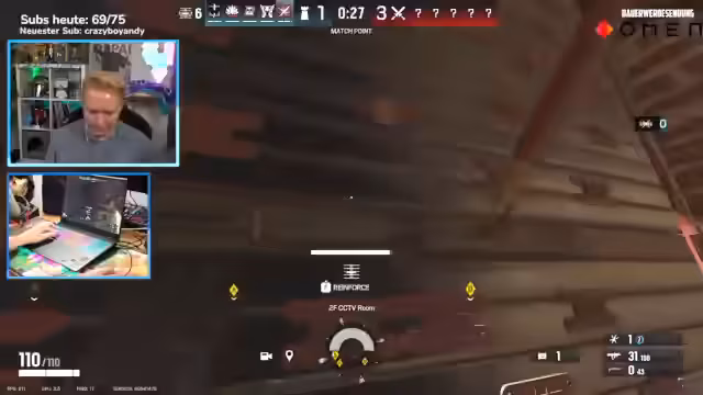 00:29:08Nach der technischen Einrichtung startet der Streamer Rainbow Six Siege direkt auf dem Omen Max 16-Laptop. Um die Leistung unter realen Bedingungen zu testen, spielt er das Spiel auf den höchsten Grafik-Einstellungen. Eine eingebaute FPS-Anzeige im Stream zeigt, dass das Spiel bei 240 FPS läuft, wobei eine Limitierung auf die 240 Hertz des Bildschirms vorgenommen wurde. Der Streamer merkt während des Spiels keine Ruckler oder Performance-Einbrüche und ist von der flüssigen Darstellung beeindruckt. Er erwähnt auch die Vorzüge des Omen Gaming Hubs, mit dem man Einstellungen wie die automatische Lüfterreinigung und die Leistungssteuerung optimieren kann, was die im Laptop integrierte High-End-Hardware ohne Overheating-Probleme ermöglicht.