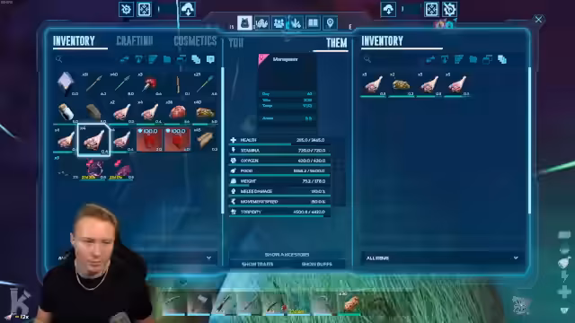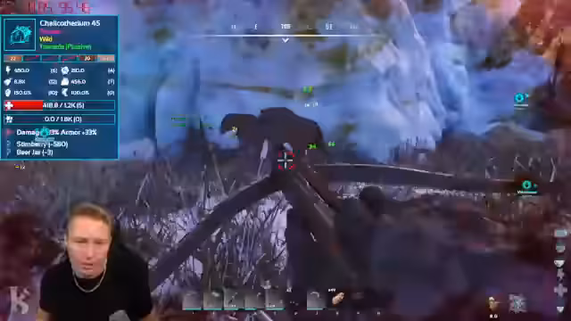 04:45:03Der Stream beginnt mit der Jagd auf Managamas im Winterbiom. Nachdem zwei Dinos erfolgreich getamed und in Cryopods eingelagert werden, wird ein drittes, hochleveltes Tier mit exzellenten Werten entdeckt. Ein Level-90-Männchen mit 20 Ausdauer und 13 Angriff ist jedoch mit nur einem Netz im Inventar unerreichbar. Das Fehlen von Ressourcen wie Obsidian verhindert das Craften weiterer Netze, was eine Rückkehr zum Basiscamp notwendig macht. Die Reise dorthin gestaltet sich als Herausforderung, da der Weg weit ist und Gefahren wie Pulovias lauern.