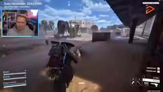 01:16:14Die Suche nach einem weiteren Wächter-Kern gestaltet sich als schwierig. Ein Versuch, das Ziel im Spiel zu erreichen, scheitert, als der Loot unerwartet verschwindet. Stattdessen werden feindliche Spieler gesichtet, die ein Surveyor-Fahrzeug nutzen. Nach einem kurzen, intensiven Schusswechsel flüchten sich die Spieler in einen Bunker, um sich vor einem Gegner auf dem Dach und dessen Sniper-Feuer in Sicherheit zu bringen.