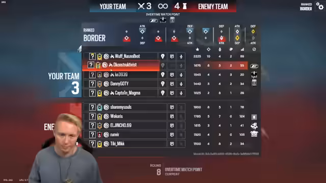 01:04:50Das Team kämpft mit der Verteidigung wichtiger Bereiche, da Gegner schnell durch "Library" und "Fireplace" vordringen. Die Spieler beklagen mangelnde Rotation und fehlende Calls, was zu Verunsicherung führt. Trotz des Versuchs, den Diffuser zu sichern, kommt es zu Fehlern, wie dem versehentlichen Labern im Spiel und dem Fehlen von Munition in entscheidenden Momenten. Die Frustration über verpasste Gelegenheiten, wie das Messern eines Gegners, ist spürbar. Die Runde endet mit einem 2:2-Gleichstand, und die Spieler ärgern sich über die Aggressivität der Gegner und eigene Fehler, wie das "Potatoen" auf Gegner. Es wird über die Wahl der Operatoren und die Notwendigkeit von "Ram-Bahn" oder "Fuse" diskutiert, um besser auf die gegnerische Strategie reagieren zu können.