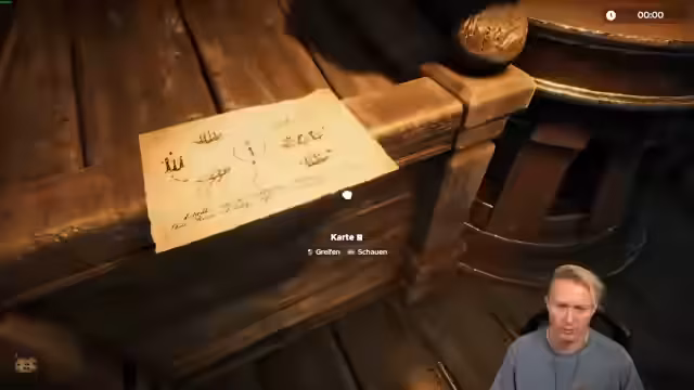 05:03:26Nachdem die Kanone abgefeuert wurde, gelangen die Spieler in die Kapitänskajüte, wo neue Rätsel auf sie warten. Ein Schrank mit drei drehbaren Elementen und die Suche nach weiteren Schlüsseln stehen im Vordergrund. Es wird ein Zettel mit Fechtpositionen gefunden, die gegen verschiedene Waffenarten wie Lang- und Kurzschwerter sowie Zweihandwaffen gerichtet sind. Diese Informationen müssen entschlüsselt und angewendet werden, um weitere Fortschritte zu erzielen. Die Spieler versuchen, die komplexen Anweisungen zu verstehen und die richtigen Kombinationen zu finden, um die Rätsel zu lösen. Die Laternen im Außenbereich des Schiffes werden erneut in den Fokus gerückt, da ein Zettel darauf hinweist, dass sie den Weg weisen. Die korrekte Kombination der Laternenbuchstaben Y, V, S, V, F und X führt schließlich zur Lösung eines weiteren Rätsels und der Freischaltung von Schlüsseln. Mit allen Schlüsseln in der Hand suchen die Spieler nach einer Karte, die den Weg zum verfluchten Schatz weist. Die Karte zeigt Berge und andere Symbole, die mit den noch zu lösenden Rätseln in Verbindung gebracht werden müssen, um die Pirateninsel zu erreichen.