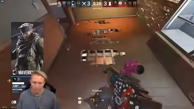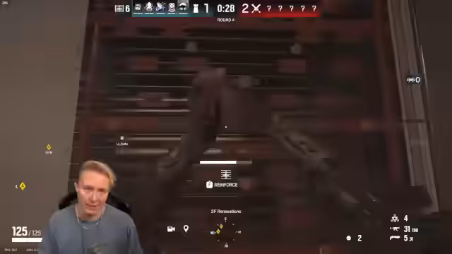 00:49:00Das Team startet in eine Rainbow Six-Runde auf der Karte Chalet mit einem vollen Fünfer-Stack im Teamspeak, bestehend aus Mamossa, Jeremy, Petcat und Darko. Der Streamer freut sich über die vielen positiven Kommentare unter dem letzten R6-Video und weist auf die Black Friday Aktionen von Instant Gaming und TNT-Supplements hin. Während des Matches kommt es zu intensiven Callouts und schnellen Entscheidungen. Der Streamer lobt seine Teamkollegen für gute Spielzüge, kritisiert aber auch riskante Aktionen der Gegner, wie Spawnpeaks. Er kommentiert seine eigene wilde Beschreibung eines Fensters zum Keller als „Window über dem Main Breach, wenn du unten bist“, was für Erheiterung sorgt. Das Team diskutiert die Wahl der Operatoren und Strategien für die nächste Runde, wobei der Streamer Maverick wählt, um Bandit-Batterien zu entfernen und vertikale Spielzüge zu ermöglichen.