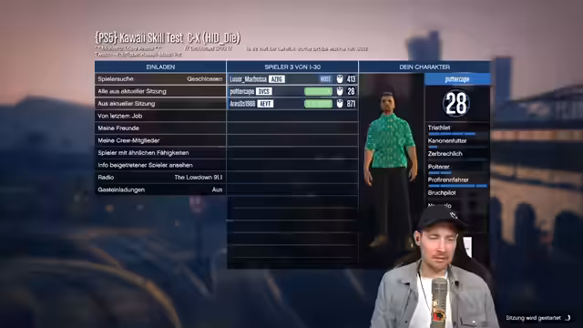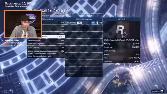 01:20:27Der Streamer und seine Co-Spieler starten eine GTA-Parcour-Challenge mit dem Titel '5 von 10', was auf einen hohen Schwierigkeitsgrad hindeutet. Teilnehmer sind neben dem Streamer auch 'Aris' und 'Jeremy'. Die Runde beginnt mit technischen Anweisungen zum Einrichten der Audiospuren für das Spiel, Discord und Mikrofon. Der Streamer begrüßt die Zuschauer und bringt sie auf gute Laune, bevor das Rennen freigegeben wird. Der Parcours erfordert präzises Fahren und Nutzung von 'Fullspeed'.