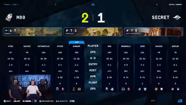 00:41:59Die Spannung steigt, als das aktuelle Match von Secret in die entscheidende Phase geht. Die Streamer sind begeistert von der Performance des Teams und spekulieren über den Ausgang. Secret gewinnt letztendlich das Match, was die Zuschauer und Streamer jubeln lässt. Es wird über die Dauer des Events gesprochen, das bis spät in die Nacht gehen könnte, abhängig von den Spielergebnissen. Die Möglichkeit, nach dem Event in München noch gemeinsam etwas zu unternehmen, wie zum Beispiel in die Sauna zu gehen, wird scherzhaft angesprochen. Abschließend wird die Map-Banning-Phase in Best-of-3-Matches erklärt, bei der jedes Team abwechselnd Maps bannt und pickt, bis die letzte verbleibende Map gespielt wird, es sei denn, ein Team gewinnt die ersten beiden Matches.