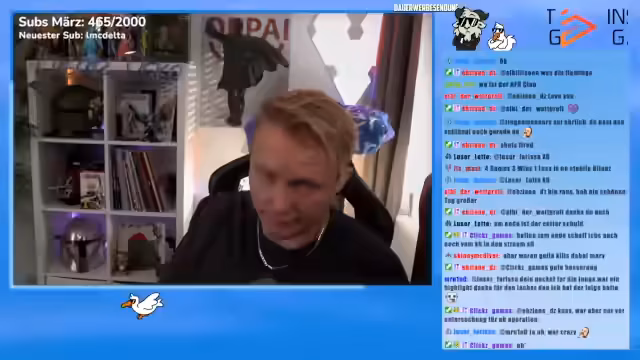 00:11:05Der Streamer begrüßt seine Zuschauer herzlich und nennt einige Zuschauernamen. Er berichtet von einer Rückenverletzung, die sich jedoch langsam bessert. Aufgrund der Verletzung konnte er ins Fitnessstudio nicht gehen, fühlt sich aber dank einem Heizkissen und schnellerer Treppe bereits etwas besser. Er erzählt zudem, dass er gestern bei einer Show von Klaus von Wagner war und ein Foto mit ihm gemacht hat, und empfiehlt die Sendung 'Die Anstalt' aus der ZDF-Mediathek.