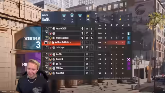 04:40:29Die Spieler starten eine Ranked-Runde in Rainbow Six Siege. Es kommt zu Problemen mit dem Voice Chat, nachdem ein Zuschauer einen angeblichen Fix gepostet hatte, der jedoch dazu führte, dass der Streamer niemanden mehr hören und selbst nicht mehr sprechen konnte. Trotz der Kommunikationsschwierigkeiten versuchen die Spieler, sich durch Pings und Calls zu verständigen. Es kommt zu intensiven Gefechten und strategischen Diskussionen über Operator-Bans und Map-Kontrolle. Die Runde endet mit einem Sieg für das Team, was die Spieler trotz der anfänglichen Schwierigkeiten zufriedenstellt. Die humorvollen Kommentare über die Call-Qualität und die technischen Probleme ziehen sich durch das Gameplay.