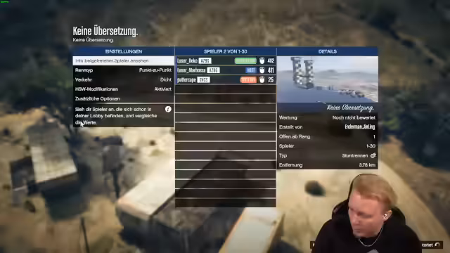 00:26:35Es beginnt die intensiv bespielte 20-Minuten-Challenge von René im GTA, eine Parkour-Map. Zunächst sind der Streamer und Aris am Start, bis später auch Deko dazukommt. Die Herausforderung besteht darin, mit dem Motorrad durch enge Parcours zu manövrieren und dabei oft gegenseitig im Weg zu stehen. Die drei Spieler, insbesondere der Streamer und Deko, verlieren sich bei einzelnen Punkten massiv viel Zeit, weil sie sich ständig blockieren, was zu humorvollen und frustrierten Reaktionen führt. Nach einem besonders chaotischen Teil ist Deko erfolgreich.