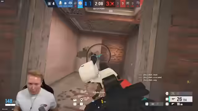 03:33:27Das Gameplay konzentriert sich intensiv auf Rainbow Six Siege. Der Streamer gibt Einblicke in seine Strategie, erwähnt Cheater-Erfahrungen und analysiert Runden im Nachgang. Er spricht über seine Rolle als Roamer und den Umgang mit Gegnern wie dem Blitz. Es werden taktische Entscheidungen, wie das Platzieren von Gadgets und das Scannen mit der Drohne, detailliert besprochen und Fehler reflektiert.