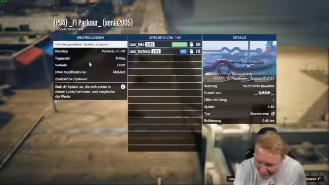 02:10:43Nach dem anstrengenden Map-Durchgang wechselt der Stream zu einem neuen Parcours im 'GTA-Modus'. Dieser zeichnet sich durch eine Vielzahl von Fake-Punkten und Fallen aus, was den Charakter eines 'sozialen Experiments' annimmt. Die Streamer interagieren untereinander, indem sie Annäherungsminen und Haftbomben platzieren, um sich gegenseitig zu trollen. Das Gameplay wird als chaotisch, aber auch lustig beschrieben, bei dem sich die Teilnehmer gegenseitig behindern und in Fallen locken.