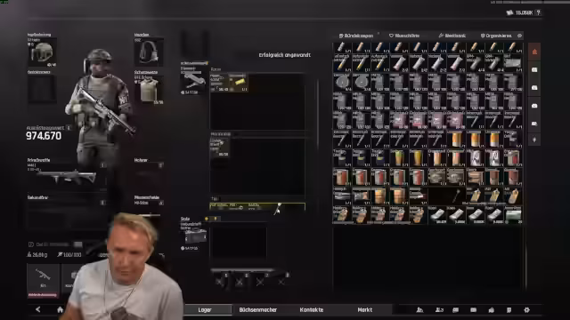 04:47:53Der Stream wechselt zu Arena Breakout (Tarkov-ähnlicher Extraktion-Shooter). Der Streamer bereitet sich auf eine Runde vor, bespricht Ausrüstung und Schlüssel für die Map Northridge. Er erwähnt, dass er nach dem Stream noch ins Fitnessstudio gehen und später Chainsaw Man schauen möchte. Finanzielle Aspekte werden angesprochen, wie die Kosten für Munition und die Rentabilität von Loot. Es geht um die Balance zwischen Risiko und Belohnung in Extraktionsshootern.