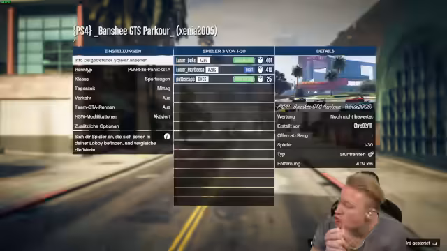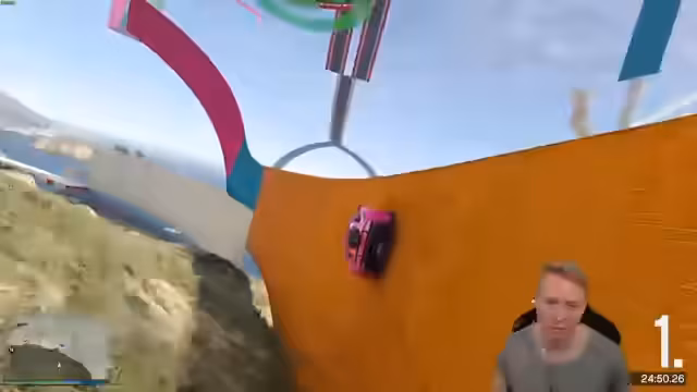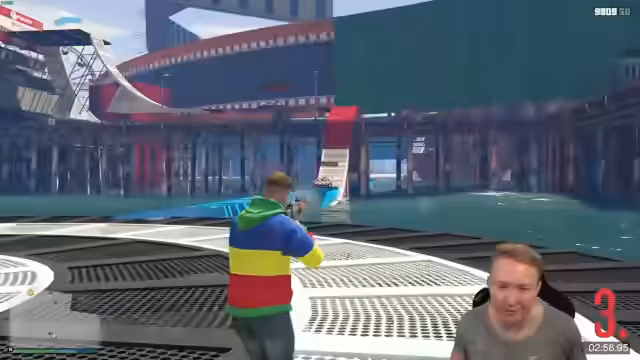 01:14:40Die Gruppe startet eine neue GTA-Session und aktiviert den Modus, um pazifistisch zu bleiben. Allerdings entbrennt schnell ein chaotisches Rennen, bei dem sich Teilnehmer gegenseitig mit Haftbomben abschießen und auf der Strecke blockieren. Aris und Jeremy haben Schwierigkeiten mit der Streckenführung und Steuerung. Deko provoziert ständig und wird als trollend beschrieben, was zu frustrierenden Situationen für alle Beteiligten führt.
