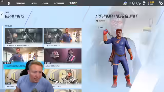 02:43:49Die Rainbow Six Siege Runde wird gelobt, trotz starker Gegner, da Stimmung und Kills gut waren. Es wird überlegt, die Runde als Notfallding zu nutzen. Die Frage nach Werbung im Titel wird beantwortet und illegale Inhalte ausgeschlossen. Es wird über einen The Boys Bundle im Shop gesprochen und der Homelander-Ace-Skin gelobt. Ein Spieler kauft das Bundle direkt und prüft, ob er es kostenlos über das Ubisoft-Creators-Programm bekommen kann. Es wird diskutiert, ob der Deimos-Skin besser zu Deimos passt, aber der Ace-Skin bevorzugt wird. Ein neuer Skin wird angeteasert, aber ein Embargo bis zum 25. wird erwähnt. Es wird über eine mögliche Elite-Animation mit Homelander und einen Charme mit Muttermilch gesprochen. Ein Diamond Spieler wird abgelehnt und der Homelander-Skin wird stolz präsentiert. Es wird über die Verfügbarkeit des Skins im Shop diskutiert und die Serie The Boys auf Amazon Prime empfohlen.