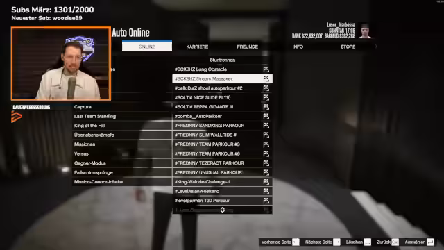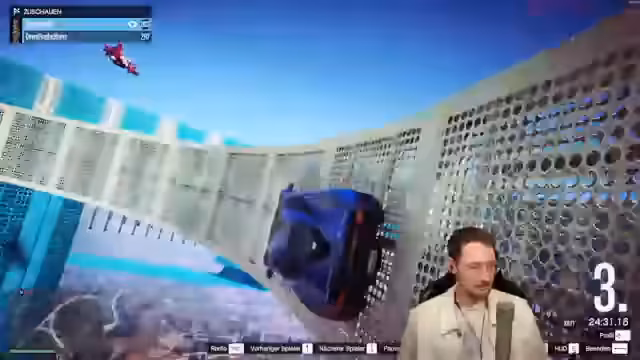 02:43:06Nachdem Marvin den Sohn abgeholt hatte, führten die verbleibenden Streamer einen chaotischen Offroad-Parcours durch. Die Zuschauer konnten per Abstimmung entscheiden, welcher Spielmodus als Nächstes gespielt werden sollte. Der Streamer betonte die Bedeutung der Live-Interaktion im Vergleich zu Videos und lobte die familiäre Atmosphäre im Kanal, in der jeder, auch wenn er nicht Teil des Kern-Teams ist, unterstützt wird. Er erläuterte die Regel, ab 12-13 Mitspielern eine Mega-Ramp zu starten, und wiederholte die Einladungsbedingung: Eine Freundschaftsanfrage auf Discord mit GTA auf PC und der Enhanced Version.