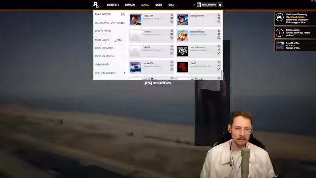 02:03:39Nach einem kurzen Problemwechsel der Szenenprojektoren wurde der Stream-Bildschirm erfolgreich umgeleitet. Der Streamer begann damit, neue Mitspieler für eine gemeinsame GTA-Session einzuladen, wobei er alle angenommenen Freundschaftsanfragen sammelte und versprach, diese zur Einladung zu nutzen. Gleichzeitig stellte er die Videoeinstellungen auf 30 FPS um und bemerkte eine Änderung bei Discord, die nun das vollständige Nitro-Abo für bestimmte Funktionen erfordert. Es folgte eine genauere Anleitung für Mitspieler, wie sie die Spieleinladung im Discord-Menü finden und annehmen können.