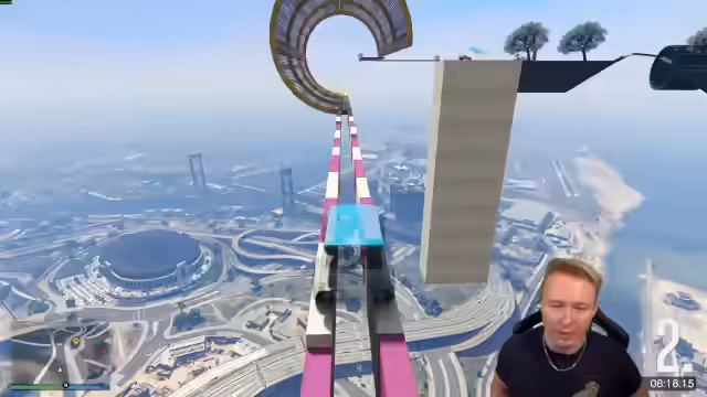 00:45:14Der Streamer wechselt zu einem GTA-Parcours. Nachdem er anfangs mit einem Fußball-Song wie 'Alle, alle, alle' getriggert wird, beginnt er, einen Parcours mit Go-Karts zu absolvieren. Er hat Schwierigkeiten mit bestimmten Abschnitten, insbesondere einem Tube Jump, den er nach vielen Versuchen meistert. Der Parcours als Ganzes wird als 'cool' und 'innovativ' beschrieben, bietet aber auch fordernde Passagen. Anschließend geht es in einen Flugzeugparcours, den der Streamer als 'World first nach 15 Jahren GTA' bezeichnet.