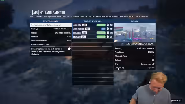 00:23:54Das Stream-Team startet einen GTA-Holland-Parcours, der als anspruchsvoll beschrieben wird. Sie bilden ein Squad aus Aris, Jeremy und Deko und versuchen, verschiedene Checkpoints zu meistern. Die Runde wird von technischen Problemen wie Blackouts und Verbindungsabbrüchen begleitet, was den Spielverlauf erschwert. Die Teammitger interagieren häufig humorvoll und necken sich gegenseitig während des Spiels.