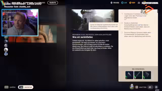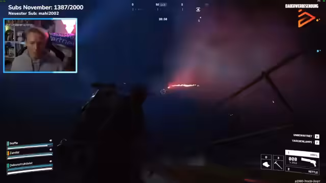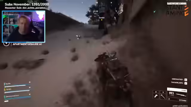 01:44:30Die Spieler befinden sich in einem intensiven Kampfgeschehen, bei dem sie auf der Suche nach Gegnern sind, die auf einen 'Bombardier' geschossen haben. Es wird nach Granaten und anderen nützlichen Gegenständen gesucht, während gleichzeitig auf Schritte und Geräusche geachtet wird. Ein toter Spieler wird entdeckt, der eine 'Ice-Kalt mit Kettel 4' und eine 'Beute Marke 3' bei sich trägt. Diese wertvolle Beute wird gesammelt, und es wird über die Möglichkeit diskutiert, die eigene 'Kettel' mit den gefundenen Aufsätzen zu verbessern. Die Entscheidung, ob man sich mit der bisherigen Beute zufriedengeben oder weitere Risiken eingehen soll, steht im Raum. Die Spieler haben bereits gute Punkte gesammelt und wertvolle Gegenstände erbeutet, was die Runde zu einem Erfolg macht, auch wenn noch weitere Herausforderungen warten.