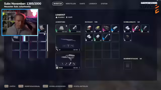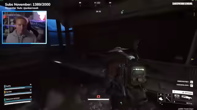 00:19:05Während der Mission kommt es zu einem Gefecht, bei dem der Streamer Steps hört und einen Gegner mit einem Schild aufladen sieht. Es kommt zu einem Solo-Kampf, den der Streamer gewinnt, indem er seine Zweitwaffe, einen Hammer, einsetzt, nachdem sein Magazin leer ist. Er erbeutet eine Kette und eine Zweitwaffe, bedauert aber, kein medizinisches Material gefunden zu haben. Ein weiterer Kampf gegen einen Bot und später gegen einen anderen Spieler führt zum Tod des Streamers, da er zu langsam die Waffe wechselt. Die Vorteile von kostenlosen Loadouts werden hervorgehoben, da der Verlust nicht so schwer wiegt. Zander meldet sich im Discord, und der Streamer schlägt Teamspeak vor, überlässt ihm aber die Entscheidung. Der Standort des Parkhauses ist nun näher, was für die Mission von Vorteil ist. Es wird überlegt, einen Supply-Job zu rufen, um zum Parkhaus zu gelangen, aber der Streamer entscheidet sich für einen manuellen Abstieg, um keine Beine zu brechen. Im Parkhaus findet er einen Fahrstuhl, der ihn zum Raider-Lager bringt, wo er zwei Behälter für seine Quest öffnet und einen Raider-Lukenschlüssel findet. Es wird über das Essen gesprochen, das er zu sich genommen hat, insbesondere über einen sehr kalorienreichen Muffin.