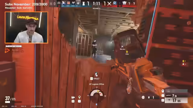 02:58:44Ein Spieler ärgert sich über eine falsch platzierte Kamera und das Fehlen von Rotation. Es wird festgestellt, dass es keine Rotation gibt und ein Super Shorty verloren wurde. Ein Spieler übernimmt die Überwachung der Garage. Die Kamera ist schief, und ein Spieler hat seine Kamera zu weit nach hinten geworfen. Die Gegner sind bereits 'inside' oder im Logistikbüro gedroppt. Ein Spieler fragt sich, ob die Gegner ihn unten sehen können. Darth Vader ist ebenfalls dort, was die Situation erschwert. Ein Spieler vertraut darauf, dass ein anderer die Position hält, während er rotiert. Die Gegner pushen in CC, und ein Spieler wird geblendet. Es gelingt, einen Gegner zu eliminieren, aber ein Nachladefehler führt zu einer weiteren Eliminierung.