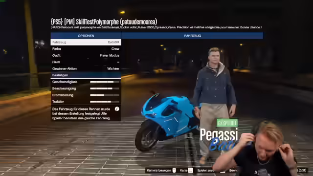 00:44:15Ein Zuschauer namens Katsui berichtet im Chat, dass er von einem Hund gebissen wurde, was zu einer längeren Diskussion über mögliche Schadensersatzforderungen und Haftpflichtversicherungen führt. Anschließend widmen sich die Streamer wieder dem Gameplay und wählen eine zweite, schwierigere GTA Map von Silber. Dabei stoßen sie auf technische Probleme mit dem Boost des Fahrzeugs, was sie frustriert, aber nicht davon abhält, die Map weiter zu versuchen und den erfolgreichen Abschluss zu feiern.