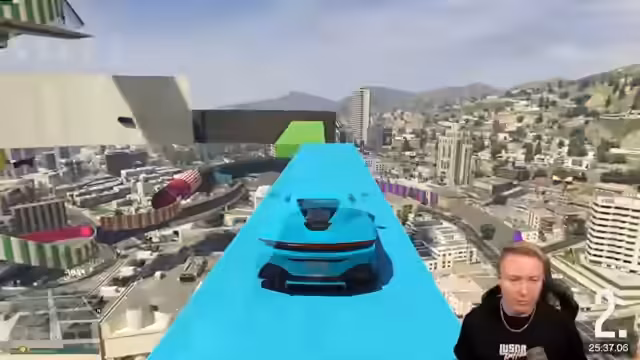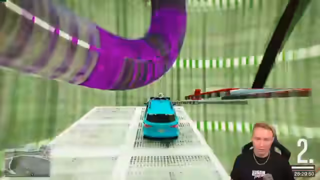 01:27:35Die Konzentration liegt wieder auf dem Spiel, insbesondere auf der Bewältigung eines sehr schwierigen Parcours mit einem neuen, unhandlichen Fahrzeug. Dieses Fahrzeug wird von dem Streamer als 'Special Needs Karre' und 'kompletter Rotz' bezeichnet, da es unkontrollierbar ist und ständig kippt. Die Herausforderung besteht darin, eine Rampe zu nehmen, in eine rote Tube einzufahren und dabei einen Punkt zu sammeln. Der Streamer benötigt viele Versuche und ist sichtlich verärgert über die schlechte Steuerbarkeit des Wagens.