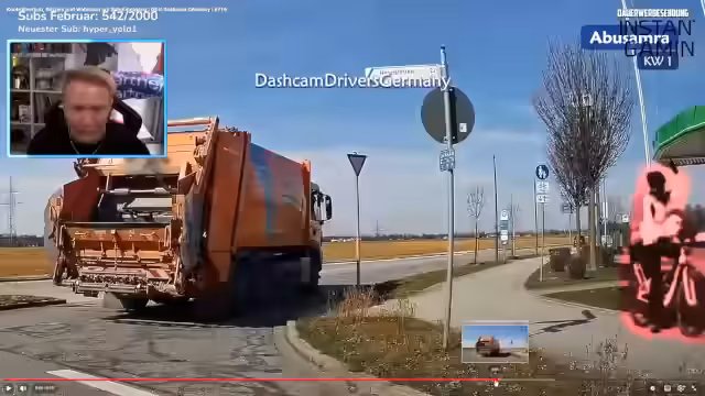 00:12:29Bevor das Spiel wechselt, zeigt der Streamer ein Video von 'German Dashcam Drivers'. Er reagiert auf diverse Aufnahmen von Verkehrsunfällen und gefährlichen Situationen auf der Straße, wie z.B. einen unachtsamen LKW-Fahrer, der fast Fußgänger erfasst. Die Reaktion des Streamers ist geprägt von Erstaunen und Kritik am Fahrverhalten anderer. Er ist baff, dass manche Fahrer bei Rot über Bahnübergänge fahren und appelliert an das Mitdenken und die Vorsicht im Straßenverkehr.