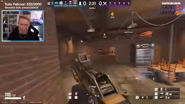 00:48:27Das Ranked-Spiel beginnt in 'Rainbow Six: Siege'. Der Streamer hat den Operator 'Castle' gewählt und stellt seine ungewöhnliche Wahl mit einem leichten Mangel an Erfahrung mit diesem Operator heraus. Sein Squad besteht aus 'Ghost Rider', der sich für die Champion-Promo qualifizieren muss, sowie 'Pasi' und 'Bubi'. Die Erste Runde verläuft für das Team eher schlecht, was im Chat zu kritischen Kommentaren führt.