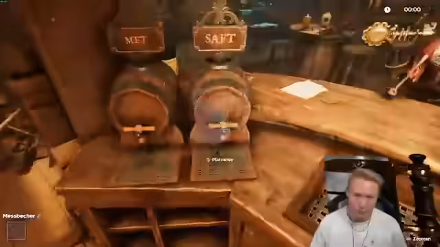 04:48:54Nach mehreren erfolglosen Versuchen, die Getränkemischung korrekt zuzubereiten, steigt die Frustration deutlich an. Der Streamer probiert unzählige Kombinationen der verfügbaren Zutaten (Saft, Met, Grog, Bier), aber die gewünschten Effekte (Sprudeln oder Schäumen) treten nicht wie erwartet ein. Er vermutet einen Bug im Spiel oder eine fehlerhafte Zuordnung der Zutaten. Der sich verkürzende Restzeit von wenigen Minuten erzeugt zusätzlichen Zeitdruck und führt zu erheblicher Nervosität, da das Rätsel trotz intensiver Bemühungen nicht lösbar scheint.