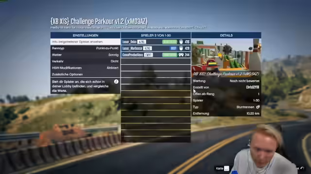 01:37:12Der Streamer ruft Olaf auf, auf den Discord-Server zu kommen, um die komplizierte Motorradtechnik zu erklären. Es entsteht ein Wettbewerb und eine Herausforderung zwischen den Spielern, insbesondere zwischen Olaf und Jeremy, ein Parcours-Duell zu veranstalten. Die Stimmung ist geprägt von einem Mix aus frustrierenden Fehlern, gezielten Provokationen und dem gemeinsamen Ziel, die Hindernisse im Parcours zu meistern.