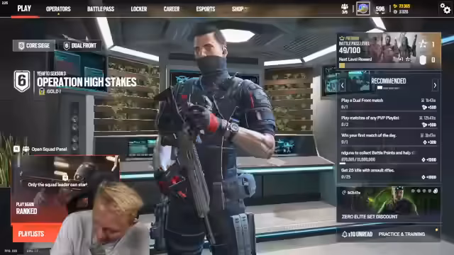 00:35:55Der Stream wechselt zum Gameplay von Rainbow Six Siege auf der Map Skyscraper. Mit einem Mitspieler namens Petcat wird eine Runde gespielt. Der Streamer gibt laute In-Game-Anweisungen und versucht, strategische Vorteile zu erlangen, während er über die neuesten Patches und Reworks von Operatoren wie Jäger, Bandit und Solis spricht. Der persistent Loading-Screen wird als frustrierend erwähnt.