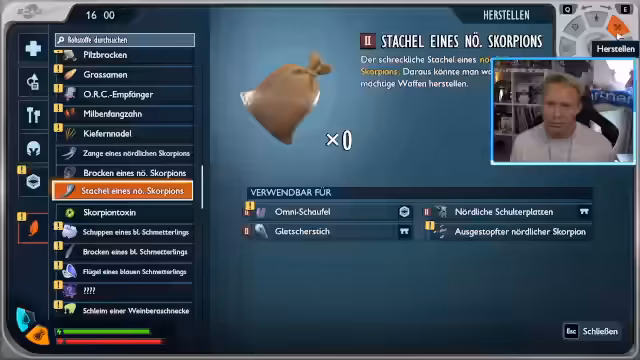 04:46:14Der Streamer startet eine Expedition in einen Ameisenbau, um Ressourcen zu sammeln und Gegner zu bekämpfen. Nachdem er in den dunklen Bau vordringt und mehrere Ameisen eliminiert, merkt er, dass seine Fackel bald kaputt ist. Ohne Lichtquelle ist er gezwungen, den Ameisenbau zu verlassen, was sich als schwierig erweist. Auf der Suche nach einer Bienenkolonie, um seinen Speer zu reparieren, stellt er fest, dass sich das Gelände verändert haben könnte. Schließlich baut er ein Bett, um vor anrückenden Feinden sicher zu sein und das Spiel zu speichern.