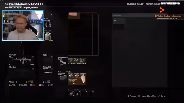 05:00:23Nachdem das Team einen feindlichen Safe erfolgreich leeren konnte und dabei einen wertvollen 'Red'-Gegenstand im Wert von 1,6 Millionen gefunden hat, kommt es zu einer internen Diskussion über die Aufteilung des Loots. Anschließend unterhalten sich die Streamer über verschiedene Spiele. Battlefield 6 wird dabei positiv für das Waffen- und Levelsystem gelobt, während Minecraft als leicht modifiziertes Projekt erwähnt wird. Auch neue Spiele wie Ark Raiders werden angesprochen.