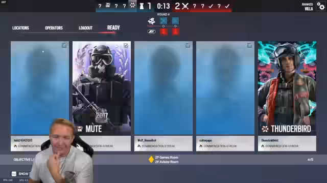 01:42:17Nach einem gescheiterten Angriff wechselt das Team zur Verteidigung. Der Streamer spielt Blitz und positioniert sich aggressiv an den White Stairs. Trotz gut geplanter Camps und guter Taktik scheitert die Verteidigung, was der Streamer auf Pech und das bessere Aim des Gegners zurückführt. Unzufrieden mit dem Ergebnis, wechselt das Operator-Lineup zu Goyo und Denari für die nächste Runde, um eine andere taktische Herangehensweise zu versuchen.