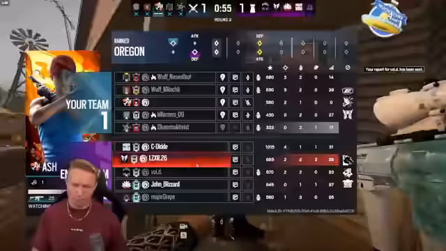 03:00:13Während des Spiels auf 'Oregon' steigt die Frustration über das mangelnde Teamplay. Der Streamer kritisiert Mitspieler für ihre schlechten Positionen und Entscheidungen und kommt in 'Bunker' fast ums Leben. Es kommt zu einem eklatanten Fall, bei dem Gegner anscheinend einen Bug ausnutzen, um durch Wände zu laufen, was als extrem unfair und unspielbar empfunden wird und zu einem technischen Report führt.
