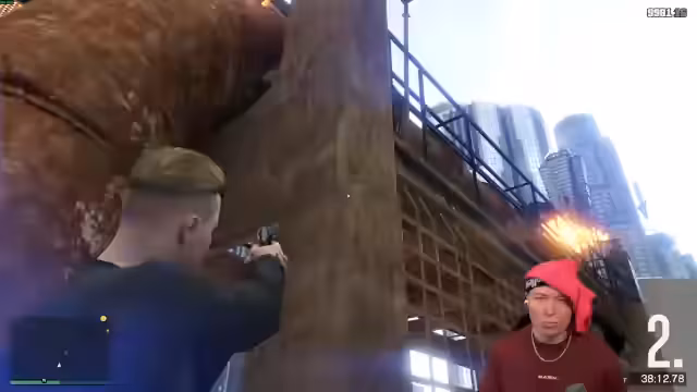 00:40:26Das Hauptziel des Streams ist das gemeinsame Spielen der sehr herausfordernden GTA Map „20 Minuten Challenge“. Der Streamer und Marvin kämpfen sich durch komplexe Phasen mit vielen World-Wechseln, schrägen Winkeln und knappen Passagen. Dabei fallen immer wieder Fehler und zeitliche Verluste, was die Anstrengung unterstreicht. Der Streamer zeigt sich frustriert über die schwierigen Strecken, bleibt aber motiviert und ist beeindruckt von der Detailverliebenheit der Map, die von Flomme in 29 Minuten gebaut wurde.