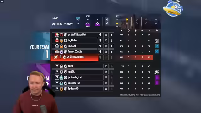 03:37:47Nachdem der Gegner eine Runde gekriegt hat, wechseln zur Verteidigung. Der Streamer diskutiert über den Einsatz von Breachern, kommt aber zum Schluss, dass er sich auf den Operator Dock spezialisiert hat. Es kommt zu technischen Problemen im Spiel, darunter ein Anzeige-Bug, der die Sichtbarkeit von Gegnern beeinträchtigt, und ein Frame Drop, das die Spielleistung kurzzeitig stark reduziert.