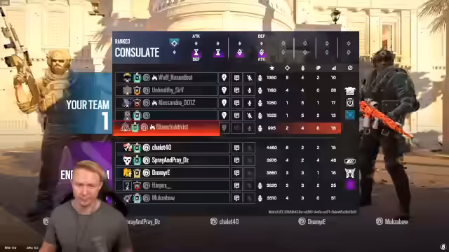 03:51:27Es zeigt sich eine growing Unzufriedenheit mit dem gewählten Operator Echo. Der Streamer argumentiert, dass der übermäßige Fokus auf die Drohnen-Kamera zu wenig Deckung und aktives Schießen ermögliche und die Gegner den Angriff durch das Zerstören der Drohne leicht vereiteln könnten. Er äußert den Wunsch nach einem klassischeren "Fragger"-Operator wie Gridlock oder Maverick, um den Druck auf die Verteidigung direkt zu erhöhen. Es kommt zu einer Diskussion über Bannwahlen, wobei Asami und Kite als potenzielle Bannziele ins Auge gefasst werden.