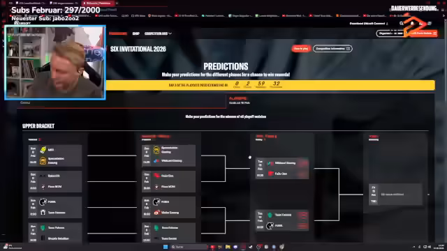 01:00:36Gemeinsam mit der Community werden die Prognosen für die aktuellen Spiele eines E-Sport-Turniers durchgegangen. Für die Paarungen FaZe gegen Wildcard, Falcons gegen Furia, Vibo gegen Secret und Space Station gegen W7M werden Abstimmungen vorgenommen und die Entscheidungen begründet. Das Ziel, durch richtige Tipps Punkte für einen Skin zu sammeln, bleibt zentral.