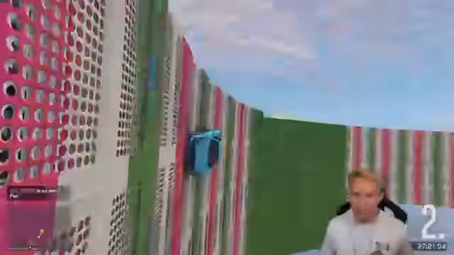 00:32:00Der Streamer startet das Gameplay des Obstacle War Rides auf der Map 'Ollyskiller plus Skyball'. Von Anfang an kämpft er mit der schwierigen Steuerung, insbesondere bei Container-Wechseln und engen Passagen. Es folgt eine längere Phase der Frustration, in der er viele Versuche scheitern lässt, die Punkte nicht erreicht und sich mehrmals selbst beschimpft. Trotz der Herausforderungen und der hohen Anzahl von 52 Punkten bleibt er dran und feiert den ersten erfolgreichen Punkt nach über 20 Minuten mit einem Shout-out an die Map-Creator Sky und Oliver.